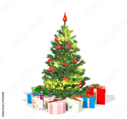 Christmas tree and gift boxes isolated on white background