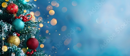 Christmas Tree Ornaments Blue Background Bokeh Lights