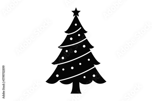 Christmas tree silhouette icon with stars and gifts. Vector illustration for holiday design, isolated on a white background.