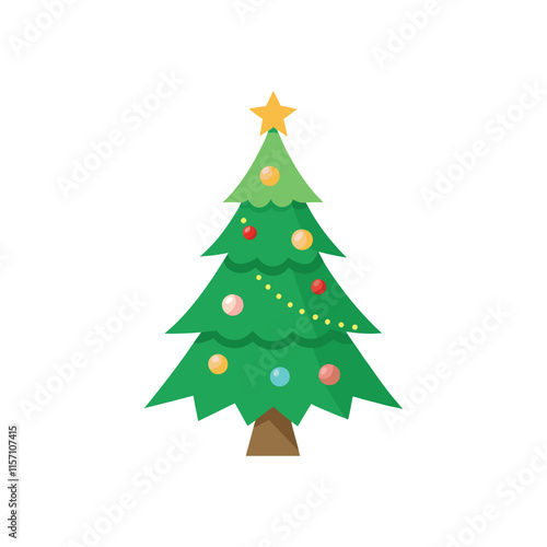 "Christmas Tree Vector Illustration – Festive New Year Icon Decorated with Lights"
