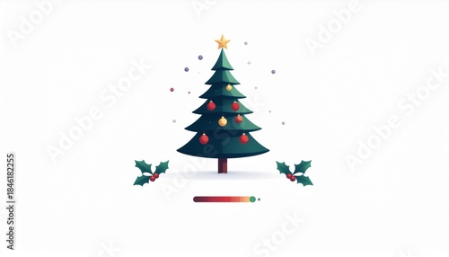 Christmas Tree with Ornaments and Holly Leaves Festive Holiday Decoration Celebration Concept Seasonal Joy Decorative Tree with Star Topper
