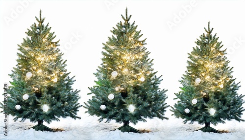 christmas tree with sparkles lights and fairy elements a bit of snow on the branches isolated on white