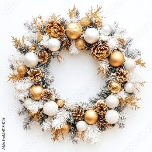 Christmas wreath background white gold.