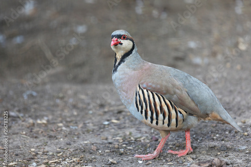 Chukar partridge (Alectoris graeca) searching for food. Alectoris chukar is very similar to European rock partridge.