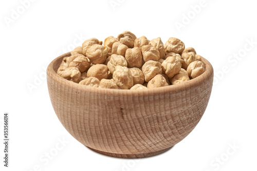 Ciecierzyca w drewnianej misce, wyizolowane białe tło