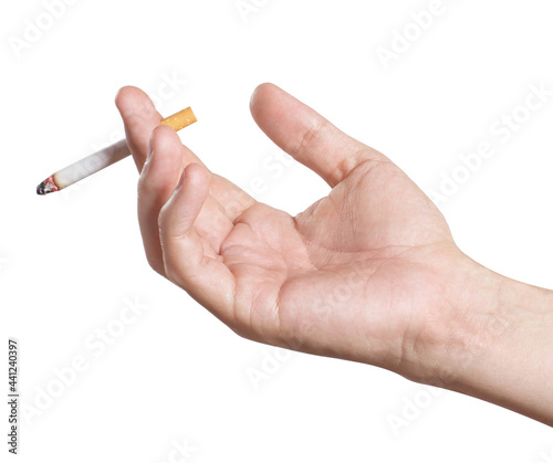 Cigarette smoker hand, isolated on white background