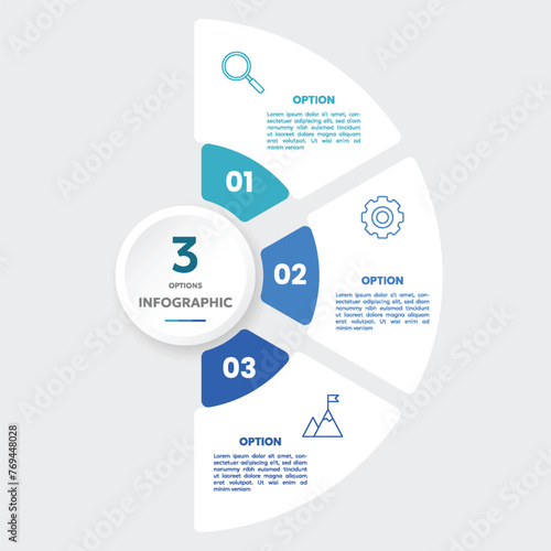 Circle chart infographic template with 3 options for presentations