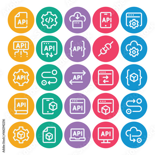 Circle color outline icons set for Application programming interface