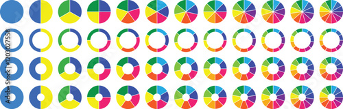 Circle pie chart diagram. 1,2,3,4,5,6,7,8,9,10, sections or steps. Flat process cycle. Progress sectors. Circle diagram collection with sections or parts. Colorful pie chart. Vector
