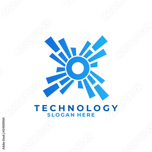 Circle splash technology logo. Pixel Light logo design vector template