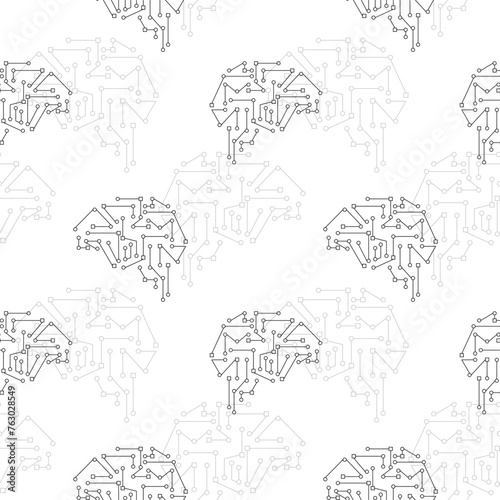 Circuit brain black vector seamless pattern. Brain shape background illustration, wallpaper. Technology, science, futuristic mind