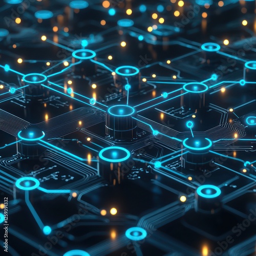 Circuitry visualized with high-tech, glowing blue connections.