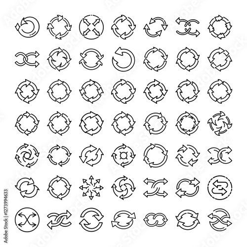 Circular Arrows Recycling Icons Refresh, Repeat, Rotate, Reload Symbols