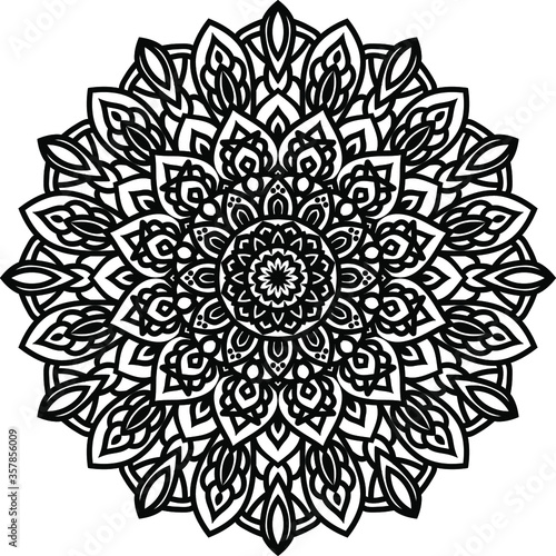 Circular pattern mandala art decoration elements for meditation poster, adult coloring book page, tattoo, henna, mehndi