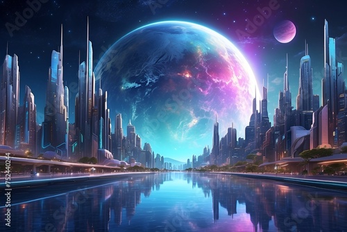 city and planet in the back
