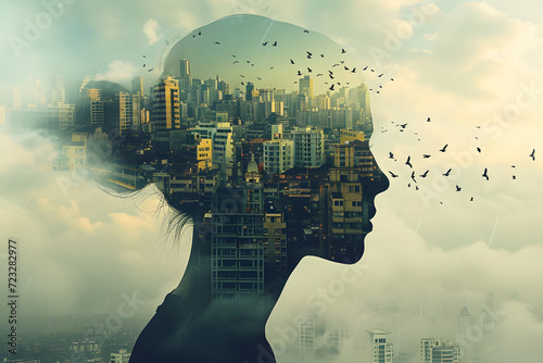 City Dreamscape Harmony: Woman's Profile in Double Exposure