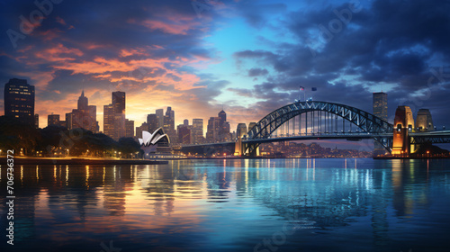 Cityscape of the Renowned Financial District at Twilight, Casting Reflections on the Waterfront. Generative AI