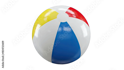 Classic Beach Ball With Red Yellow Blue And White Panels Isolated On Black Background