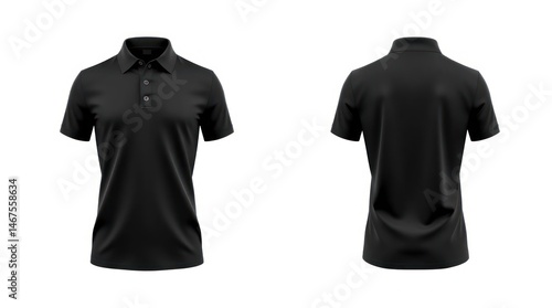 Classic black short-sleeve polo shirt, shown front and back. Clean design, ideal for customization