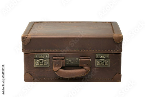 Classic brown leather suitcase with brass accents, ideal for travel, photography, and vintage-themed projects.