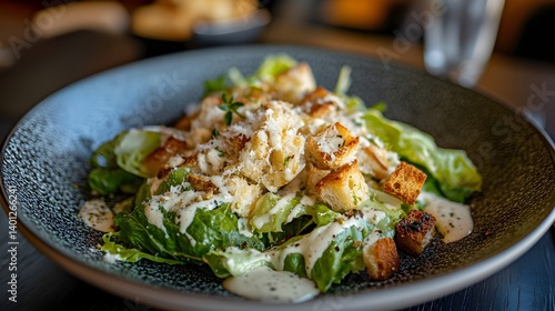 Classic Caesar salad with crispy romaine lettuce, croutons, parmesan, and creamy dressing