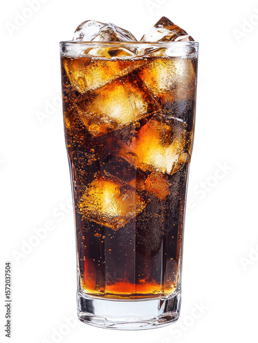 Classic Cola Glass – Traditional cola served in a tall glass with ice on transparent background