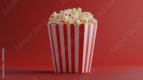 Classic red and white popcorn box on vibrant red background