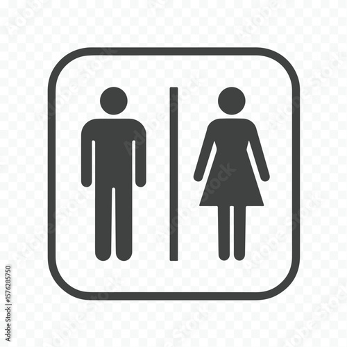 Classic restroom sign featuring a clear silhouette of a man and woman separated by a vertical line