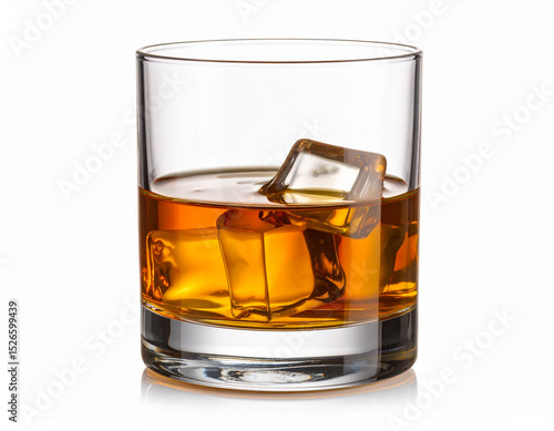 Classic Whiskey Glass with Ice Cubes with White Background, isolated