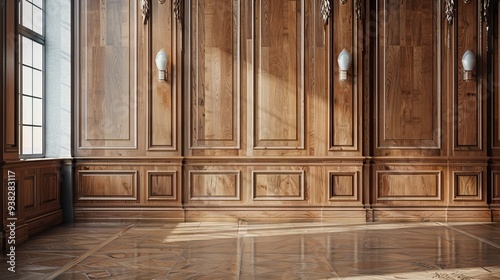 Classic Wooden Panels and Laminate Flooring in Modern Luxury Home Interior. AI generated illustration