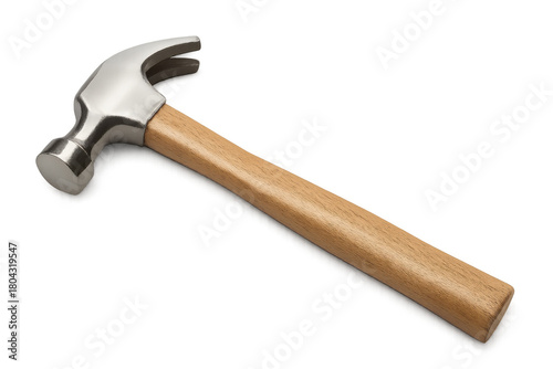 Claw hammer featuring a polished steel head and a natural wood handle, isolated against a transparent background
