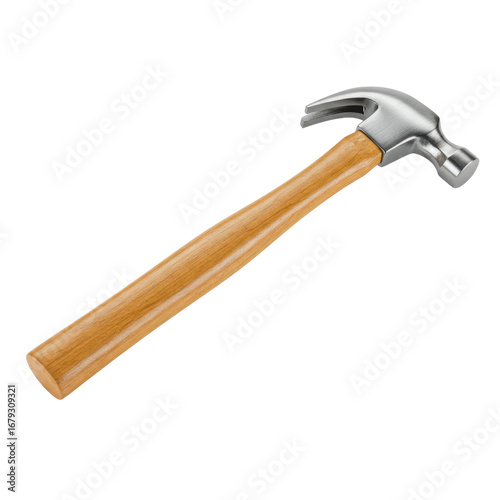 Claw hammer with a wooden handle isolated PNG with Transparent Background