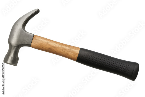 Claw hammer with wooden and rubber grip, essential tool for carpentry, construction projects, and home diy repairs on transparent background