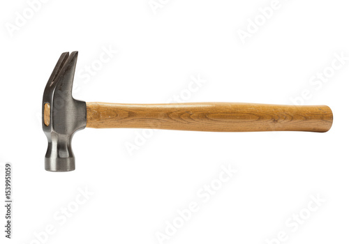 Claw hammer with wooden handle isolated on transparent background
