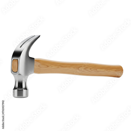 Claw hammer with wooden handle isolated on transparent background, a tool for carpentry