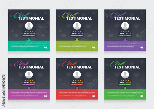 Clean and simple client testimonial banner set template. customer review social media post carousel template design.