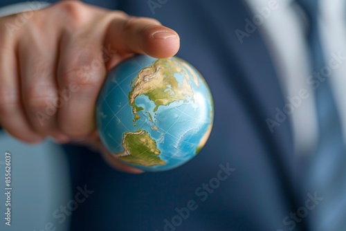 Close up of a finger pointing at a map on a globe