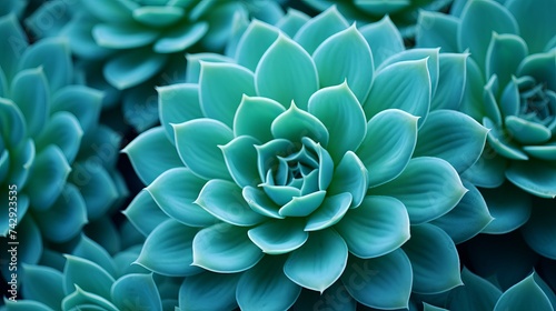 Close up of a teal cactus. Teal cactus leaves. Tidewater green background. Cactus plant pattern wallpaper. Succulent plant patterns. Details of a succulent leaves. Succulent bloom