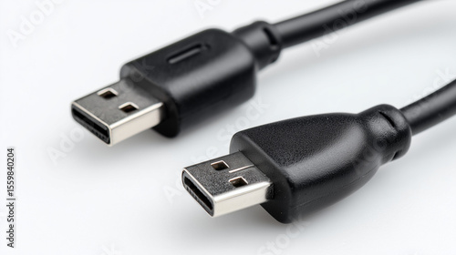 close up of Connector micro-USB, USB with cable, isolated on white background. Black cable for data transfer between device