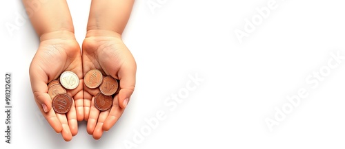 Close up of hands holding a handful of coins. Concept of money, finance, savings, and economy.