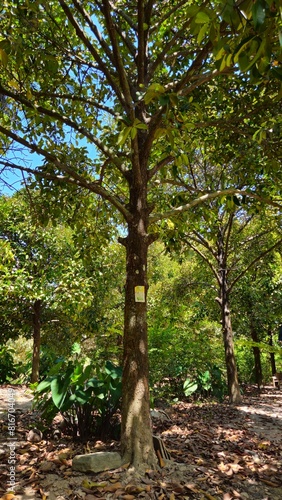 Close up of mangosteen tree in the garden at Mekong Delta Vietnam.