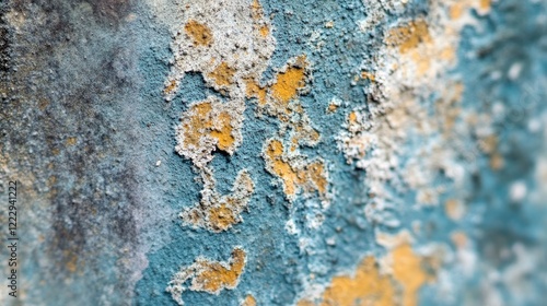 Close Up of Moldy Texture Featuring Blue Tones and Blurred Background with Space for Text for Use in Design and Marketing Projects