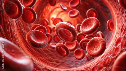 Close up of red blood cells flowing through blood vessels, biology, human body, circulatory system, artery, vein