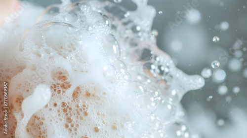 Close Up of Soap Suds and Bubbles Texture with Soft Light Bokeh