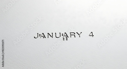 Close up of the date january 4th printed in a typewriter font on white paper