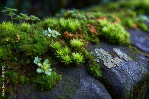 Close Up of Vivid Green Moss Growing on Dark Stone