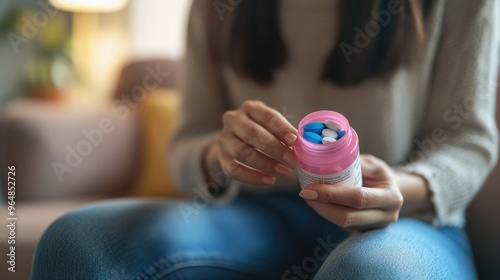 Close up of woman's hand showing a few pills, emphasizing the importance of medication in her daily routine.