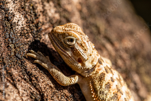 Close up on pogona sunbathing, beautiful animal