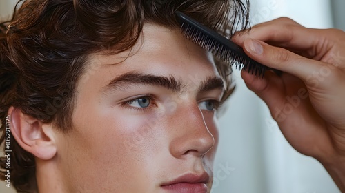 Close up photo of clean healthy man's hair. Young man comb his hair.