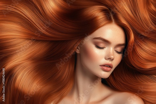 Close up portrait of a stunning model with lustrous long red hair